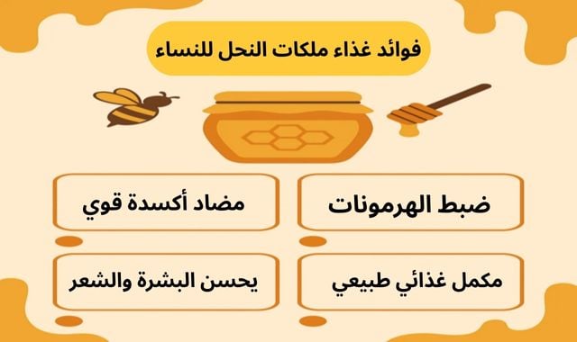 يمنح تناول غذاء ملكات النحل عدة فوائد صحية وجمالية، نظرًا لأنه غني بكل ما تحتاج له الأنثى من فيتامينات ومعادن ومضادات أكسدة وأحماض أمينية.